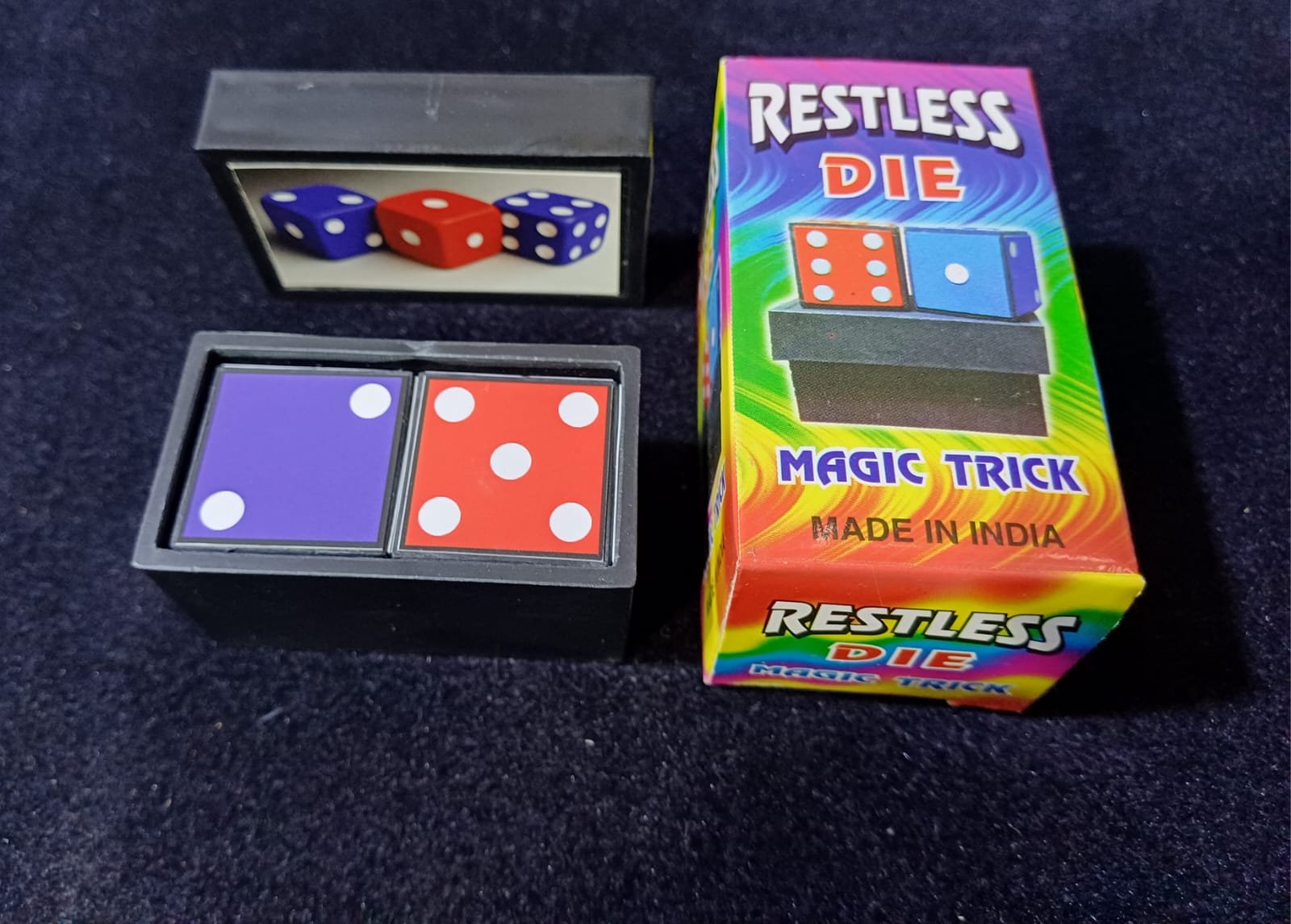 After a magical move he shows that the blue die is back in the box! He closes the box and after another magical move the blue die appears from his pocket! Very easy to perform, visual close up magic to carry in your pocket !!